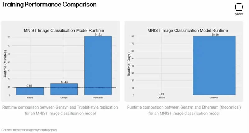 除了其创新的验证方法外,Gensyn 还声称相对于中心化替代方案和加密竞争对手来说具有成本效益 - 提供的 ML 训练比 AWS 便宜高达 80%,同时在测试中胜过类似项目 Truebit。