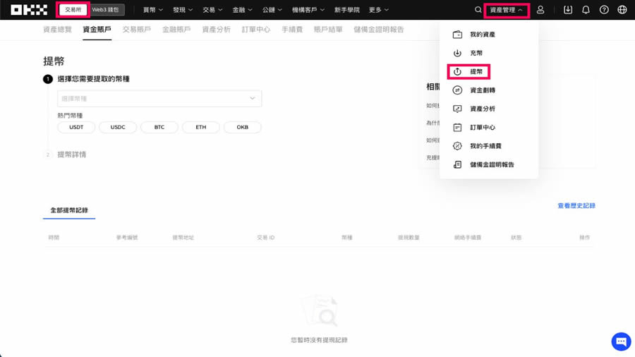 注意!在进行任何出金操作时,一定要确认「地址和币种的正确性」以防止资金白白损失。