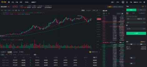 左侧是走势K线蜡烛图,下面是柱状成交量,右边是当前的交易单。(界面是可以自己调整布局的)