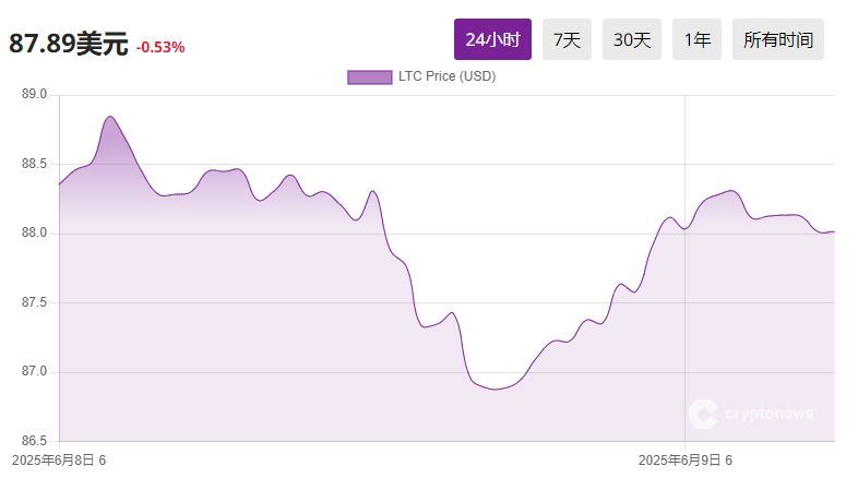 交易费0.0002 美元交易速度4秒市值1344.7亿美元24小时价格变动XRP+4.61%7. 莱特币(LTC)——低成本代币,手续费为 0.0025 美元