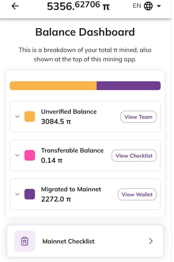 打开 Pi Browser;进入主网钱包(Pi Wallet);查看链上余额与“锁仓信息”;若已迁移,链上余额应该显示 Pi主网币数量,并且会有一部分处于“锁定状态”。此外,也可以进入 App 主界面,点击主菜单 > “主网迁移”,查看进度状态。